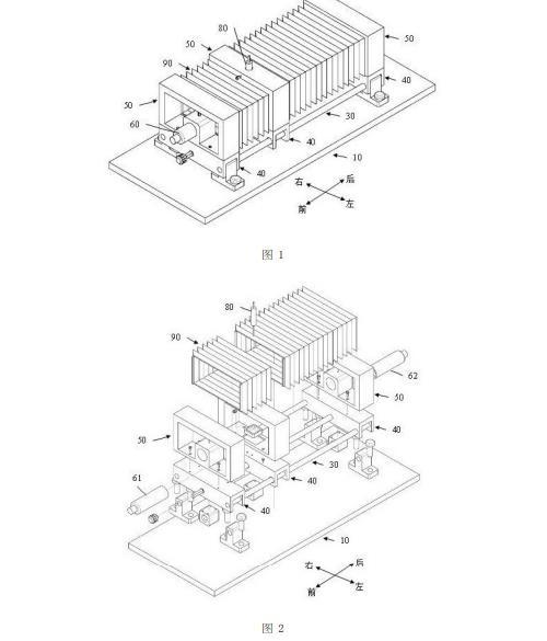遮光罩90的上壁板、下壁板、左壁板和右壁板都为可伸缩的波纹板,使得当第三窗形件53沿着第一丝杆21前后移动时,遮光罩90能够随着第三窗形件53伸长或者缩短。
