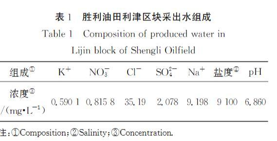 实验试剂:葡萄糖、柠檬酸钠、酵母粉、KH2PO4、(NH4)2SO4、MgSO4·7H2O、乙酸乙酯为分析纯,购自国药集团化学试剂有限公司;正己烷为优级纯,购自Merck公司;二氯甲烷为优级纯,购自B&J公司;正构烷烃混合标准:C8—C40包含异构烷烃姥鲛烷和植烷,购自Accustandard公司;层析硅胶(100~200目)及硅胶层析板购自青岛海洋化工厂;原油采集自中国石化胜利油田有限公司利津区块;降解实验用水根据胜利油田利津区块采出水组成配置(见表1),采出水中pH、盐度用多参数仪(Manta3.0,Eureka,美国)测定,K+、NO-3、Cl-、SO2-4、Na+等离子依据SY/T5523—2016《油田水分析方法》中给出的检测方法检测。