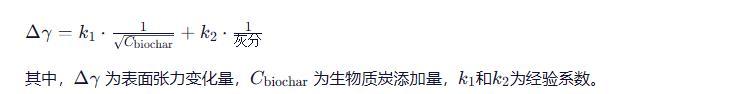 2.生物质炭表面改性:通过表面功能化处理,增强生物质炭表面的含氧官能团密度,进一步提高其降低表面张力的能力。
