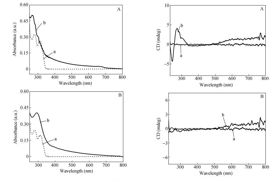这个位置对应于香豆素基团的吸收带,因此归属于香豆素基团的CD信号。在CODA单体LB膜中,香豆素基团间形成了紧密的H-聚集,而且由于相邻两个芳香环受到π-π体系间静电斥力的影响以"面对面"重叠排列的可能性很小,通常存在错位。在单分子膜压缩过程中,香豆素基团间强烈的π-π堆积形成螺旋排列,并且由于过度挤压,体系镜面对称性被打破,某一方向的螺旋堆砌结构在LB膜中占主导地位,从而产生超分子手性。需要指出的是,CODA单体LB膜手性信号强度和方向与沉积过程密切相关,即不同批次制备出的LB膜手性信号强度大小不一甚至是方向相反。换句话说CODA单体LB膜形成的螺旋结构方向是随机的。但是对于CO2DA单体LB膜,分子排列较松散,存在局部的缺陷,香豆素基团间无法形成紧密有序的规整排列,没有观察到明显的CD信号(图5(B))。