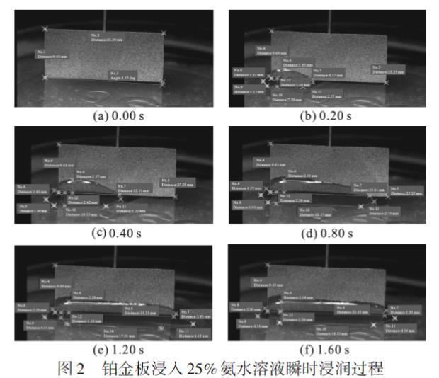 图2 铂金板浸入25%氨水溶液瞬时浸润过程