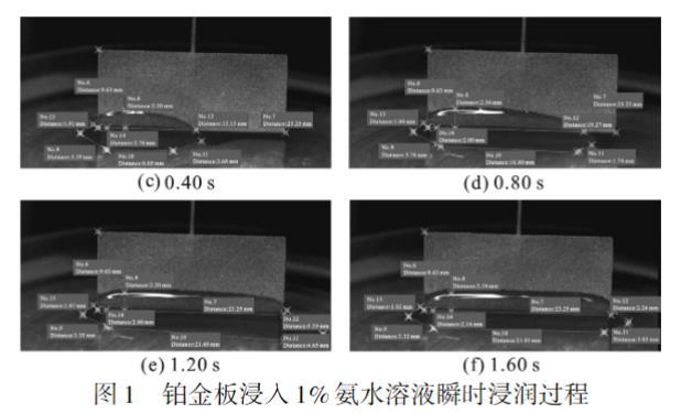 图1 铂金板浸入1%氨水溶液瞬时浸润过程